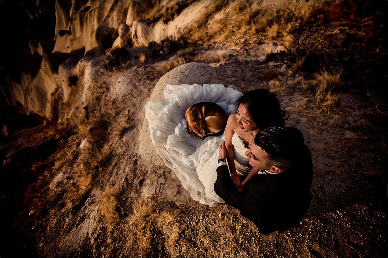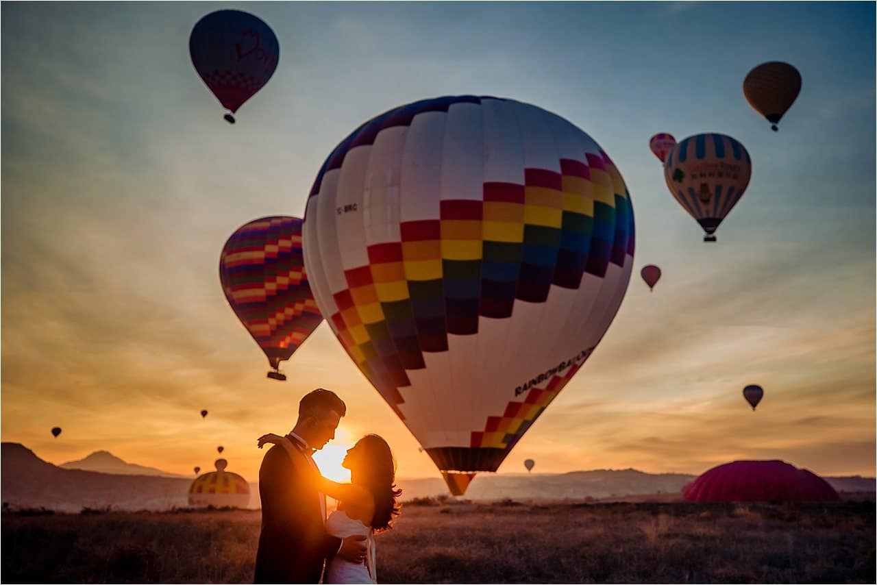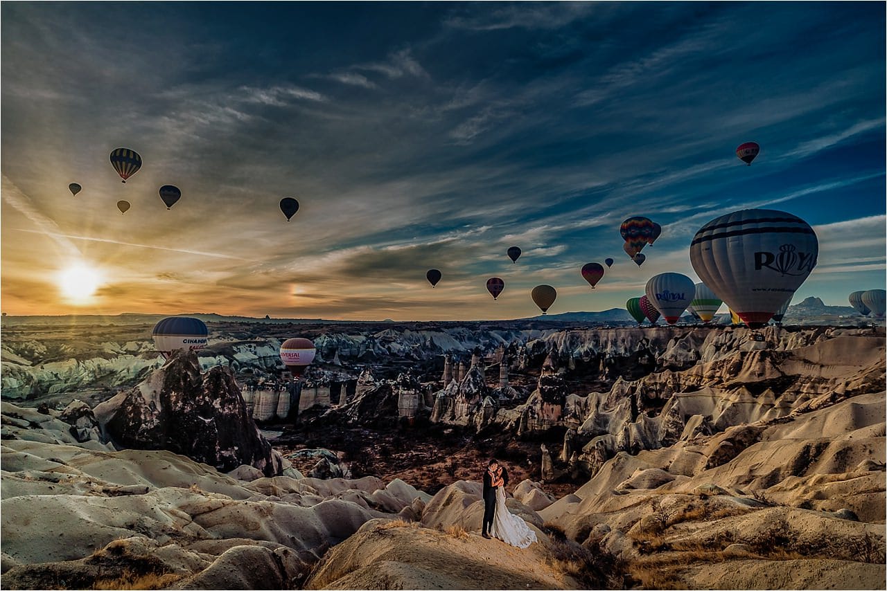 Wat was dit gaaf! Dit stond al jaren op mijn lijstje om te doen en het werd werkelijkheid. Mijn goede vriend Ufuk nodigde mij uit om naar Turkije te vliegen en samen met hem deze shoot te doen. Het was al heel vroeg opstaan op de dag van de shoot omdat we echt de zonsopgang wilden meenemen en het magische licht te vangen. Dit super leuke stel uit Singapore was werkelijk overal voor in. Om 5 uur in de morgen stonden we al klaar en het enige wat we hoefden te doen was wachten op de tientallen ballonnen die werden klaar gemaakt voor de vlucht.