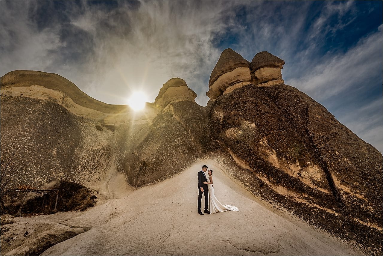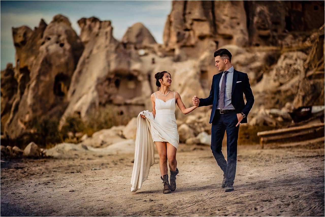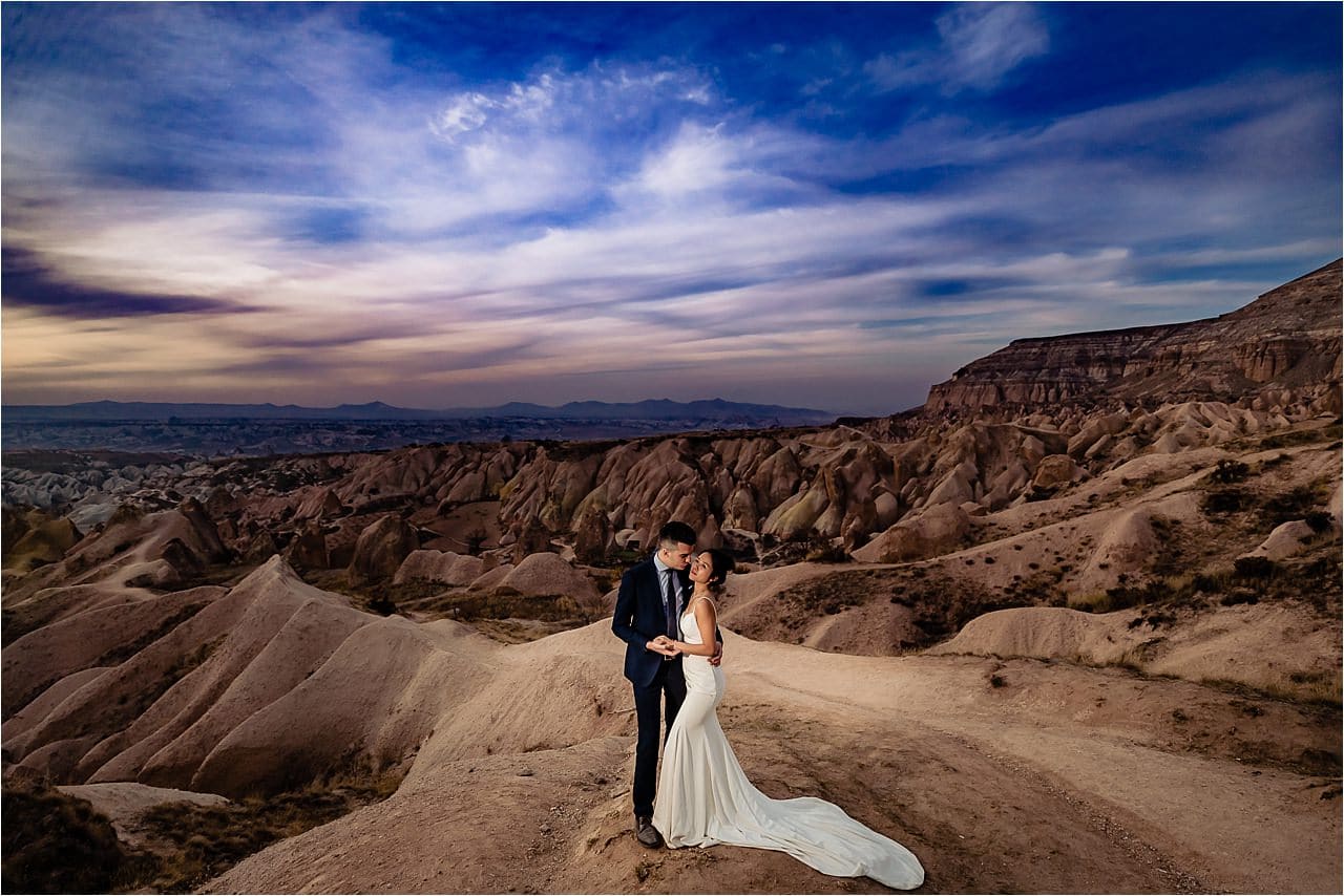 Wat was dit gaaf! Dit stond al jaren op mijn lijstje om te doen en het werd werkelijkheid. Mijn goede vriend Ufuk nodigde mij uit om naar Turkije te vliegen en samen met hem deze shoot te doen. Het was al heel vroeg opstaan op de dag van de shoot omdat we echt de zonsopgang wilden meenemen en het magische licht te vangen. Dit super leuke stel uit Singapore was werkelijk overal voor in. Om 5 uur in de morgen stonden we al klaar en het enige wat we hoefden te doen was wachten op de tientallen ballonnen die werden klaar gemaakt voor de vlucht.
