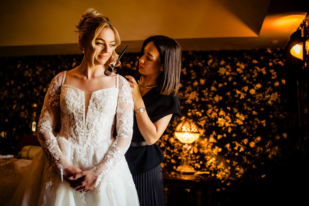 The day began in the castle’s historic rooms, where Samantha got ready in a space filled with natural light and antique details. Stephen waited outside in the garden, where guests had already gathered. Beneath a lush floral arch, with the castle as their backdrop, they exchanged their vows. It was a moment that made everything and everyone fall completely silent.