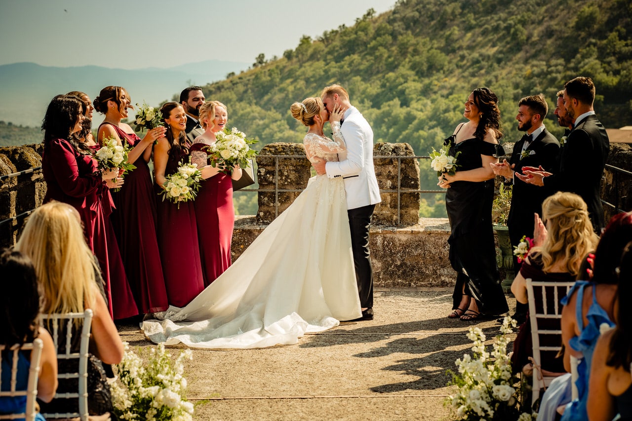 Some weddings feel as if they’ve stepped straight out of a movie. The wedding of Samantha & Stephen from Florida was exactly that. Their love brought them from the sunny shores of America all the way to the heart of Italy, where they exchanged vows at one of the most enchanting locations you can imagine: Castello Brancaccio, near Tivoli.
