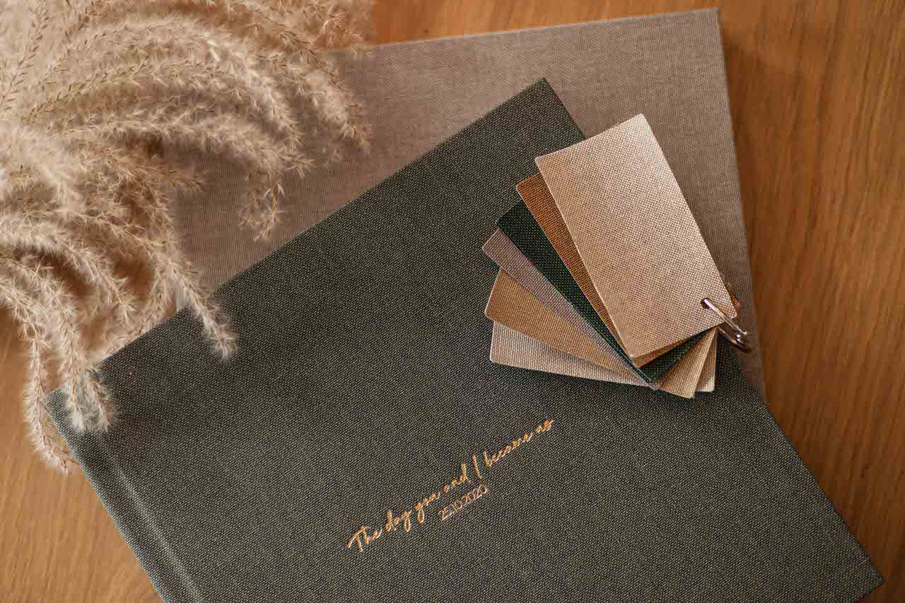 Voor de omslag kun je kiezen uit hoogwaardig linnen of kunstleer, met talloze opties. Net als mijn trouwalbums worden de mini-albums lay-flat geprint, wat betekent dat de pagina’s volledig vlak liggen zonder bolling in het midden. Zo lopen foto’s prachtig door over beide pagina’s.