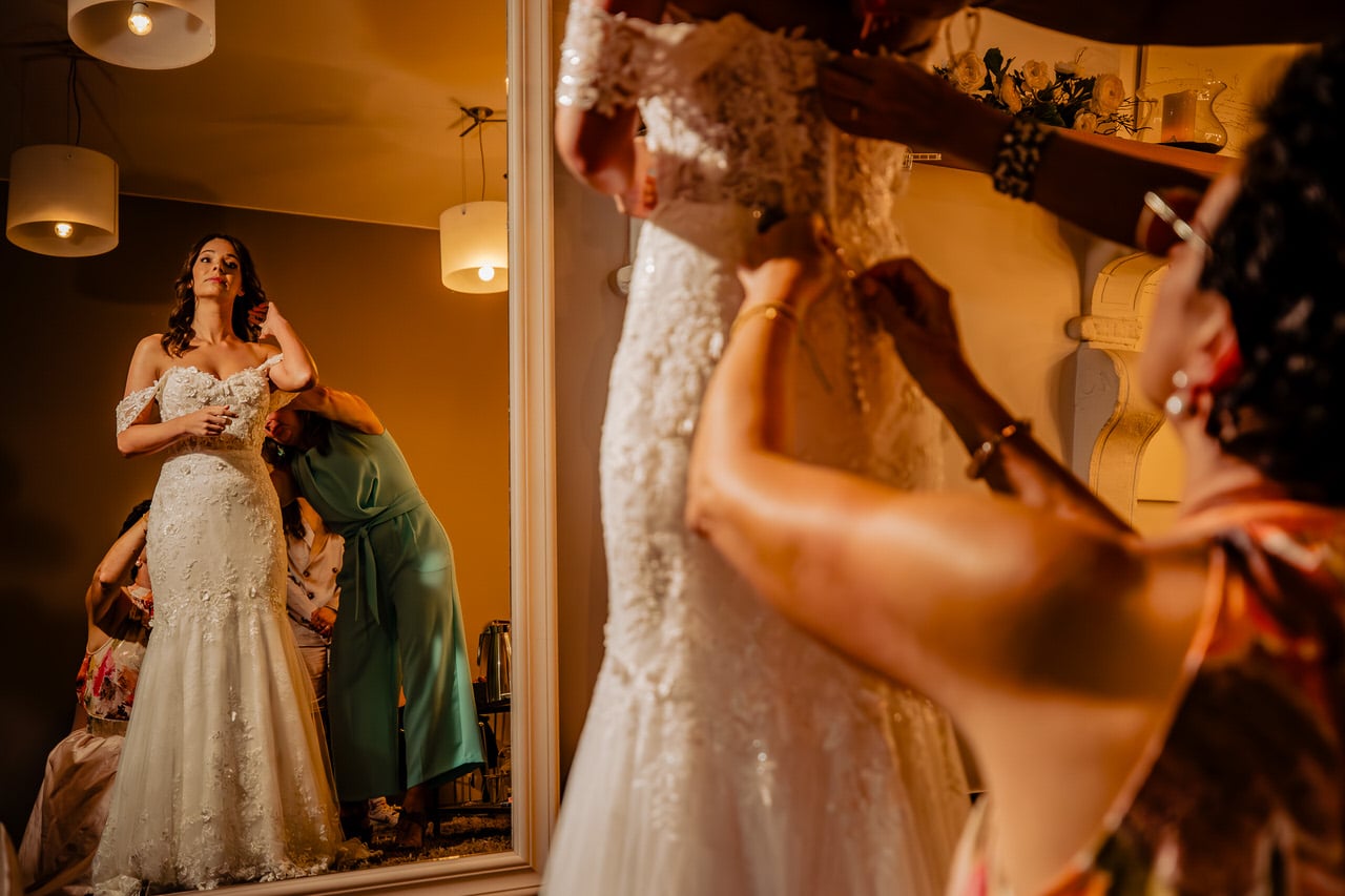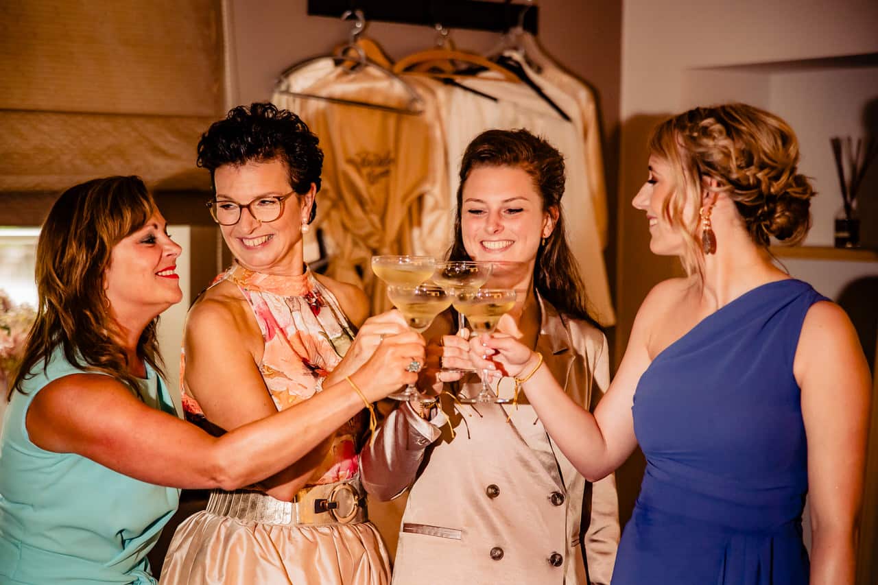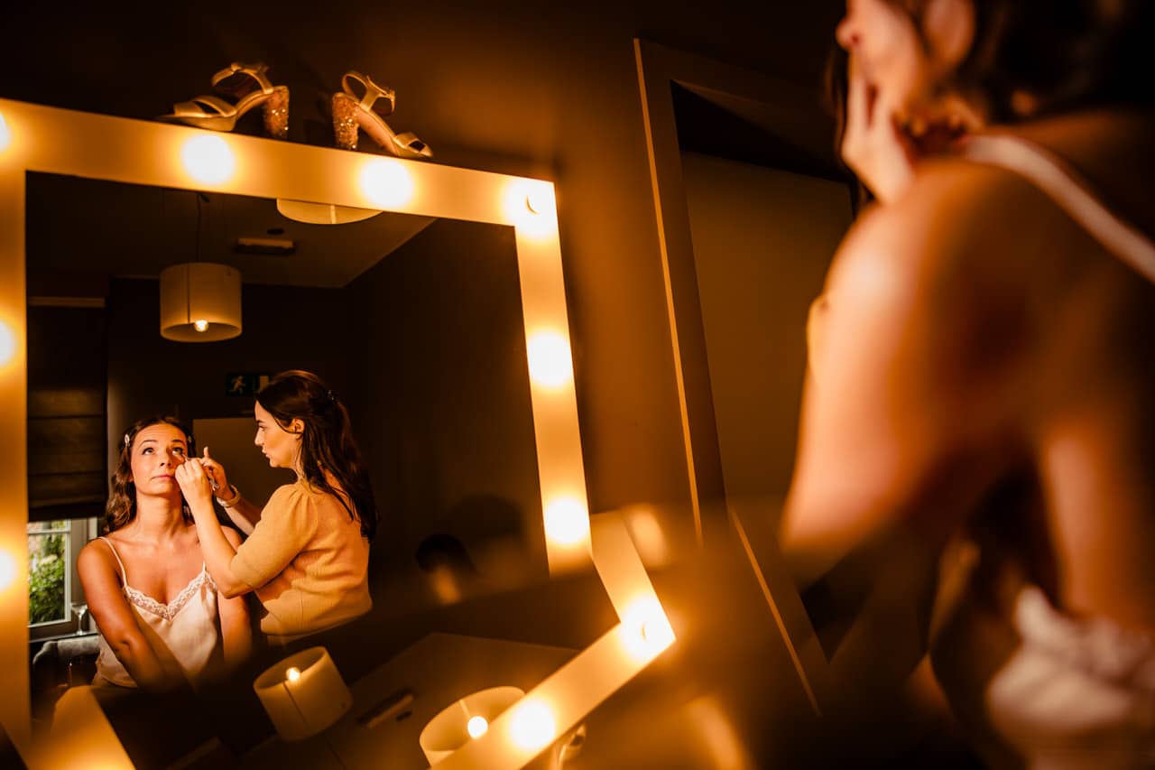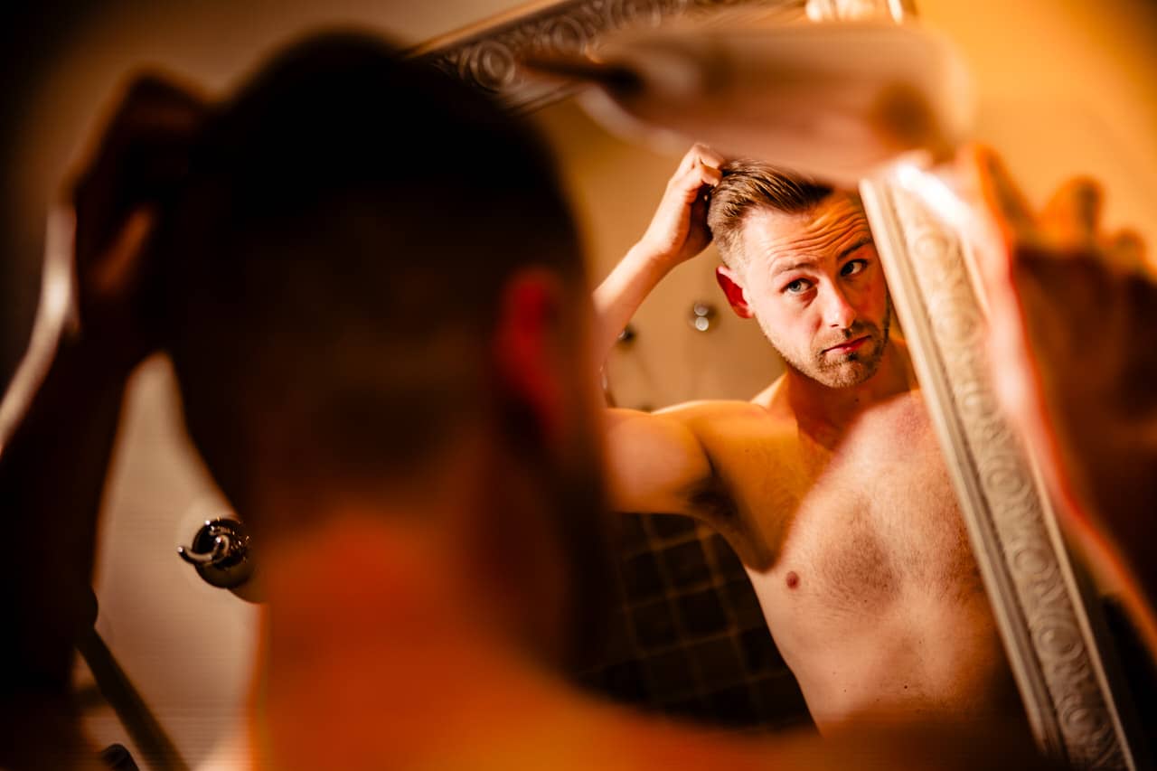 De dag begon vroeg voor Eric en Maartje, die samen met hun naaste familie en vrienden genoten van de voorbereidingen in de prachtig ingerichte kamers van Het Fonteinhof. Terwijl de bruid zich klaarmaakte met haar bruidsmeisjes, werd Eric omringd door zijn vrienden die hem hielpen met de laatste details van zijn outfit. De opwinding en verwachting waren duidelijk voelbaar, en de glimlachen waren overal aanwezig.