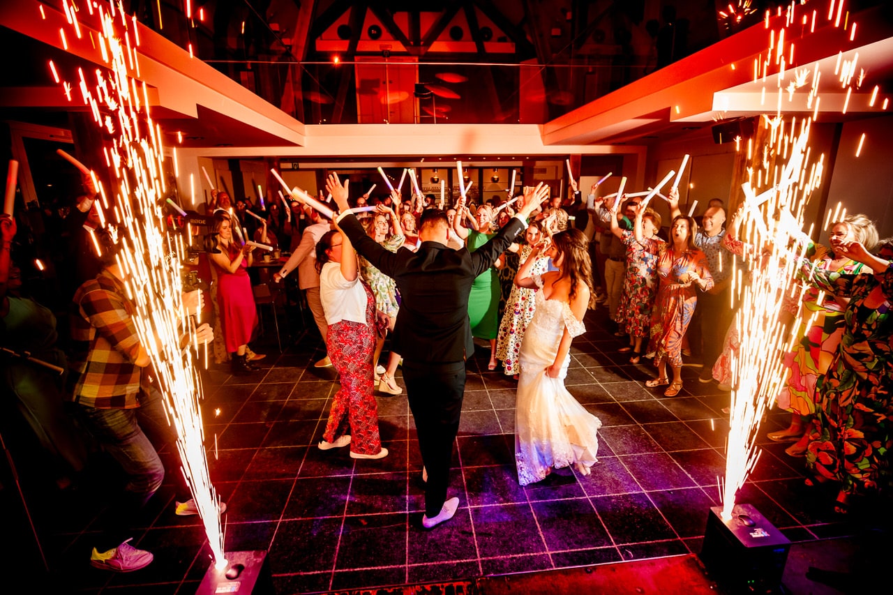 Na de ceremonie volgde een feest dat in het teken stond van vreugde en samenzijn. De receptie werd gehouden in de sfeervolle binnenplaats van Het Fonteinhof, waar gasten genoten van heerlijke hapjes en drankjes. De avond viel, en de tuin werd verlicht door zachte lampjes die een sprookjesachtige gloed over het geheel wierpen.