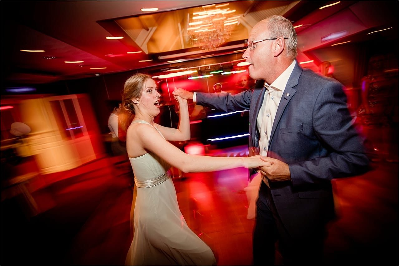 De avondceremonie was sfeervol en intiem, met warme verlichting en romantische decoraties. Dit intieme decor maakte het jawoord nóg indrukwekkender. Het feest daarna was een knaller: een volle dansvloer, veel lachen en een energie die tot in de late uurtjes voelbaar bleef.