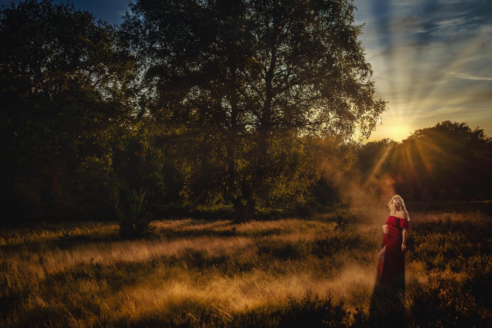 Stel je voor… een zacht briesje dat door je haar waait, zonnestralen die je huid strelen en een landschap dat lijkt alsof het speciaal voor jou is geschilderd. Dáár sta jij. Stralend. Trots. Met die prachtige babybump die alles zegt zonder een woord.